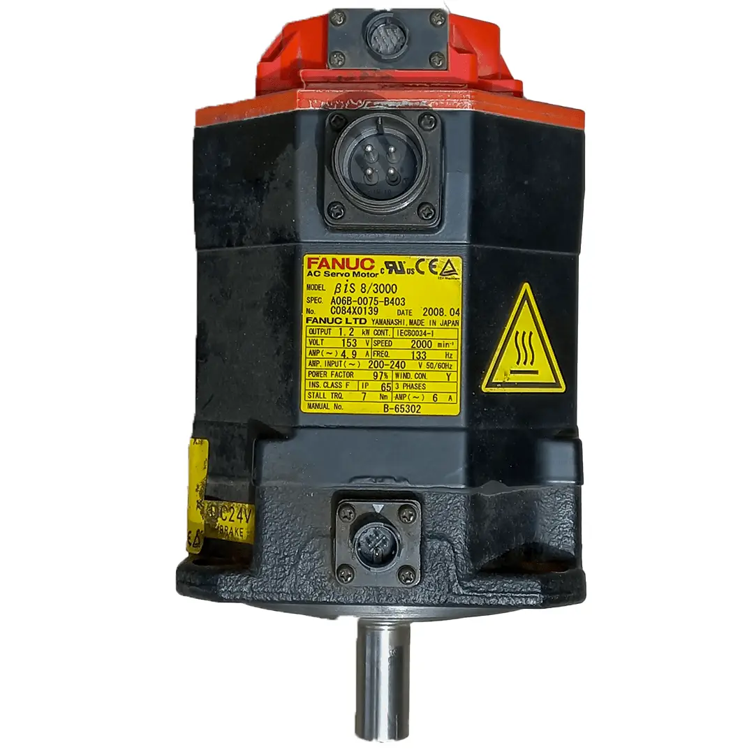 The Fanuc A06B‑0075‑B403 is a high-performance AC servo motor built for precision CNC machining and robotic automation. As part of Fanuc’s renowned A06B‑0075 series, this motor delivers a powerful mix of torque stability, rotational accuracy, and environmental protection—making it a top-tier solution for modern industrial applications like multi-axis turning, high-load milling, and pick-and-place robotics.